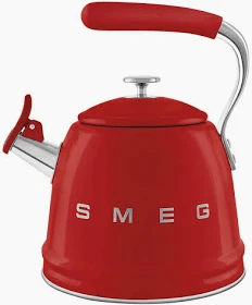 From the Italian-based company SMEG, known for its retro-look appliances, this whistling tea kettle comes in a choice of fun colors. I particularly love it in red. It beautifully captures the playful 50s vibe.